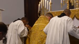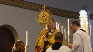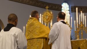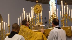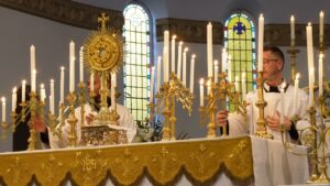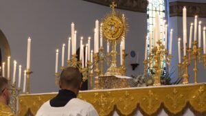 From Friday 24 October until Sunday 26 October, our parish observed a Forty Hours Devotion, a beautiful and solemn time of prayer in which the Blessed Sacrament is continuously exposed on the altar. From the opening Mass on Friday evening, until the closing Benediction at 17:30 on Sunday, parishioners were invited to attend either the scheduled events, or spend quiet time in prayer and contemplation. For many, it was a deeply moving experience. The reverence of the altar, the candles throughout the night and the peacefulness of the church create a special opportunity to be with the Lord.
