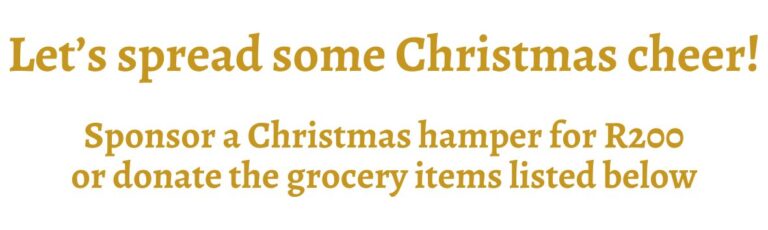 We therefore once again appeal to you to help us make Christmas a little more special for these families by sponsoring a grocery hamper for R200. This will be added to the monthly food parcels we distribute in December.